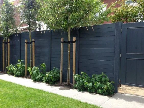 The simple black decorative concrete fence wich is enhanced with some concrete blocks for plantation.